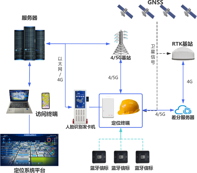 1、高精度實時人員定位:系統應實時統計廠區人員的數量,并在地圖上顯示人員的位置。
